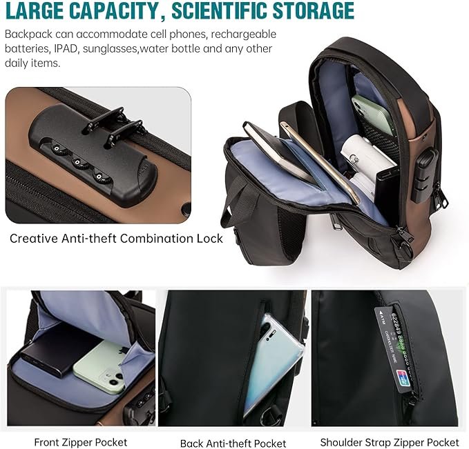 عملية وآمنة – حقيبة الظهر الرئيسية المضادة للسرقة مع سحاب وقفل، مثالية لحماية أغراضك الشخصية، ومريحة لتأمين متعلقاتك الثمينة. مع منفذ شحن USB، يجعل من السهل شحن هاتفك عندما تكون في الخارج وتسافر. الجيب المخفي المضاد للسرقة يحمي متعلقاتك من السرقة. الجزء الأمامي من الحقيبة مطبوع بتصميم خط عاكس، وهو أكثر أمانًا عند السفر ليلاً.